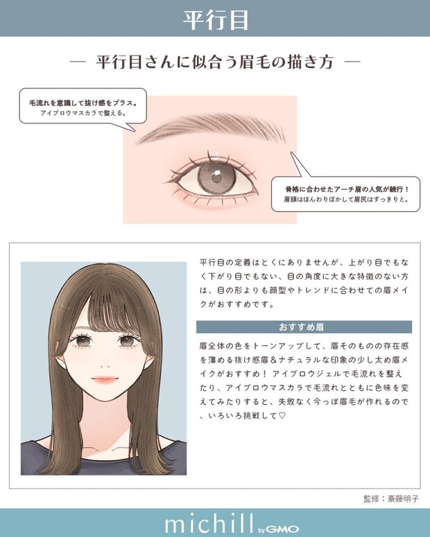 平行目さんに似合う眉メイク