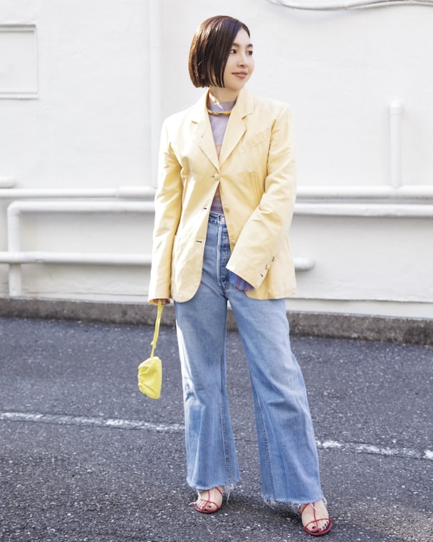イエロー、ブルー、オレンジなど春らしい色使いを思いっきり楽しんでいる和井田さん。色をたくさん使っているにもかかわらずうるさくならないのは、軽い素材感でトーンを合わせているから。