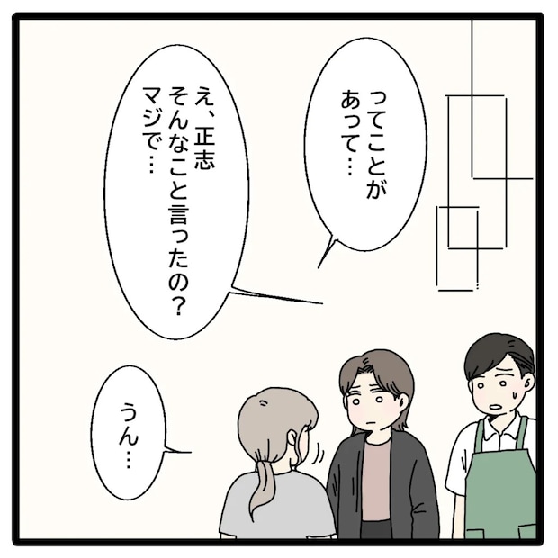 美沙ちゃんが仕事中の裕二さんも呼んで来てくれました。私は二人に、正志から離婚しようと言われたこと、聡子さんと再婚して総一郎さんと一緒に多田家を支えていくと正志が言っていたことを話しました。美沙ちゃんも裕二さんも「え、正志そんなこと言ったの?マジで・・」と驚いていました。私だってまだ信じられないのですから、2人が驚くのも当然です。