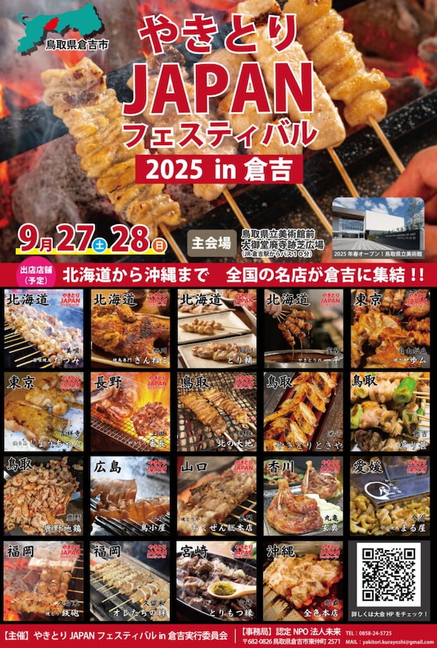 年に一度、全国の焼き鳥の名店が集まる祭典「やきとりJAPANフェスティバル」が2025年9月末に鳥取で開催されるよ~♪