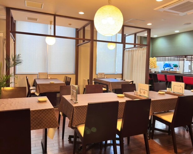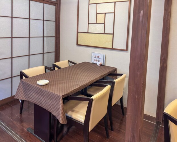 仕切りのない中央の席は、テーブル同士をくっつけると大人数にも対応できそうなレイアウトになっています。