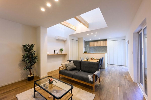 また、モデルハウス成約の人には、展示中の家具・照明・エアコン1台をプレゼント。入居後すぐに快適な暮らしを始められる。