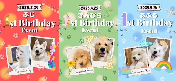 四つ目は、1歳バースデーポスターの抽選券プレゼント。昨年店内に掲示していた6頭それぞれの1歳記念ポスターを、各開催日1〜2人にプレゼントする。なお、ポスターは使用済みのため多少の汚れがある。