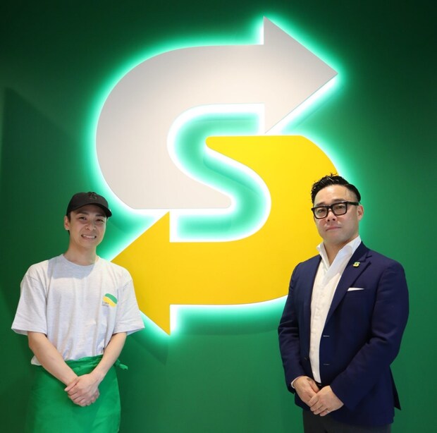 サブウェイ ヨコハマベイサイド本店の山之城隆司店長(左)とWATAMI FAST CASUAL MANAGEMENT マーケティング本部の海野徹基部長(右)