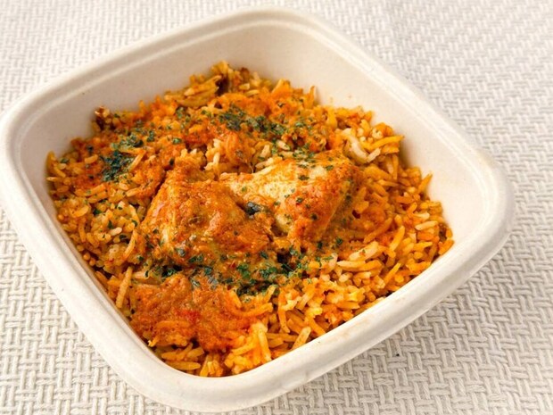 本場インドのビリヤニをベースに作られている「チキンビリヤニ」です。鶏肉も丁寧にひと晩調味料と共にマリネされており、メインのライスはバスマティライスを使用。