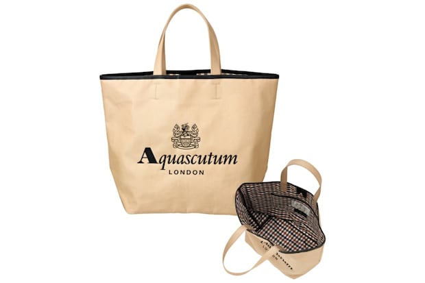 内側にはクラブチェックが施されたトート。内ポケットや肩掛けできるハンドル等、使いやすさも◎。通勤に、ママバッグに。バッグ[H33×W29×D19㎝]¥26,400(アクアスキュータム)