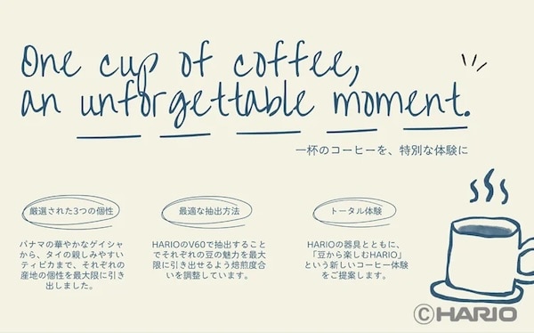また、それぞれの土地の気候や標高、精製方法が織りなす味わいを、HARIOならではの焙煎設計で最大限に引き出している。