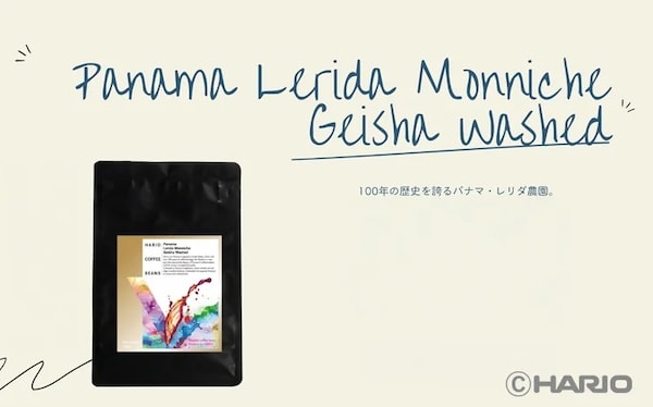 製品名は「HARIO COFFEE BEANS GEISHA Washed(100g)」で、メーカー希望小売価格は4,950円(税込)。パナマ・レリダ農園産のゲイシャを「V60」で抽出し、存分に愉しむことができる。