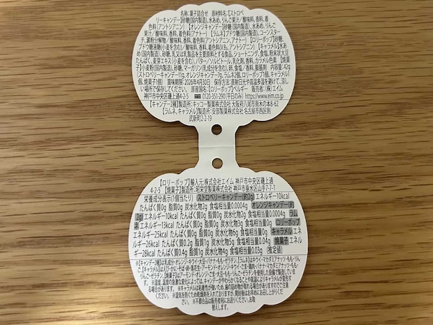 ピンク・ホワイトのラムネが2個入っていました。食べてみると口の中がシュワッと爽快に♪小腹がすいたときにパクッと気軽に食べられるのがうれしい!オレンジ色でかぼちゃがたくさん描かれた包みもキュートです。