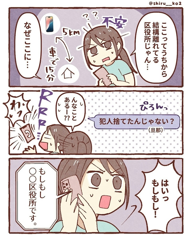 スマホの位置情報が移動して、不安な気持ちになる しる子さん。すると、区役所から電話がかかってきます。