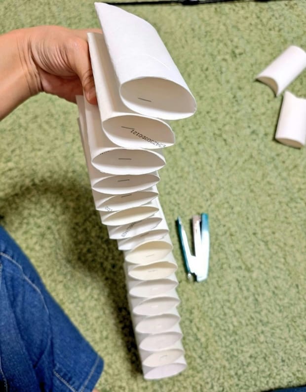 「何ができる?」トイレットペーパーの芯を捨てず→16個使った工作に反響