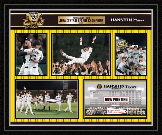 2025 JERA セントラル・リーグ優勝を果たした阪神タイガース。「阪神タイガース 2025 JERA セ・リーグ優勝記念フォトフレーム」は、リーグ制覇が決定したメモリアルゲームの際に撮影された名シーンの写真を多数使用。上部のプレートには1枚1枚にシリアルナンバーを刻印し、プレミアム感を演出している。