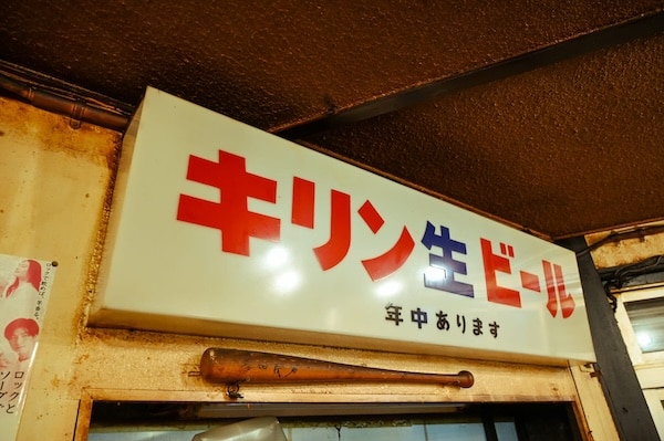 ふと壁を見ると、目に飛び込んできたのが「キリンビール 年中あります」の文字。