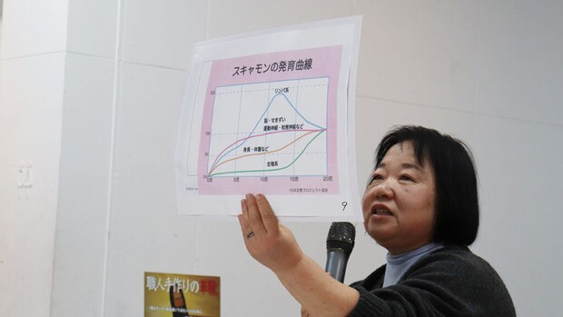 子育て世代にとって衝撃的だったのが、「スキャモンの発育曲線」を用いた解説です。
