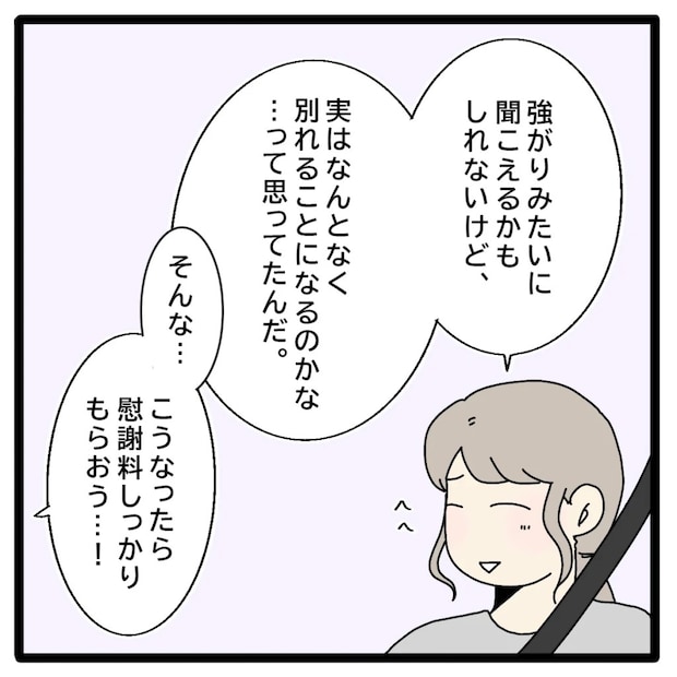 「強がりみたいに聞こえるかもしれないけど、実はなんとなく別れることになるのかな・・・って思ってたんだ」私はへへっと笑いながら、美沙ちゃんに本音を打ち明けました。美沙ちゃんは、「こうなったら慰謝料しっかりもらおう!」と私の背中を押してくれます。