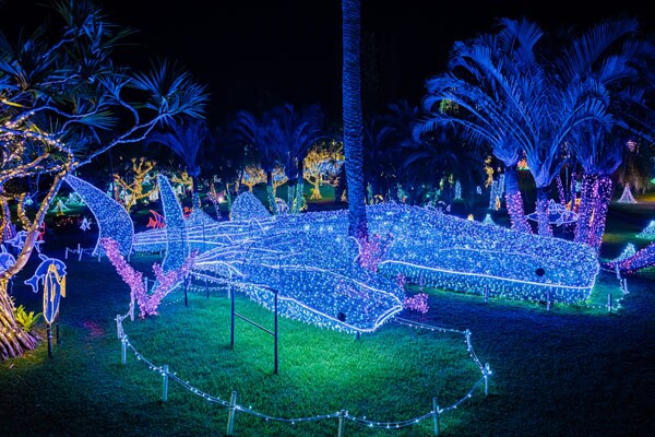 東南植物楽園を訪れて、環境に配慮したコンテンツとして高い評価を得た「南国ECOライツ」をはじめとしたイルミネーションを楽しんでみては。