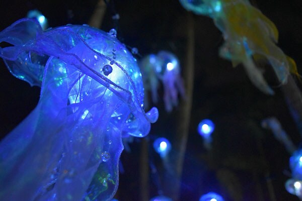 壮大な蓮の花のイルミネーションをはじめ、新エリアには光るクラゲが漂う幻想的なエリアと、