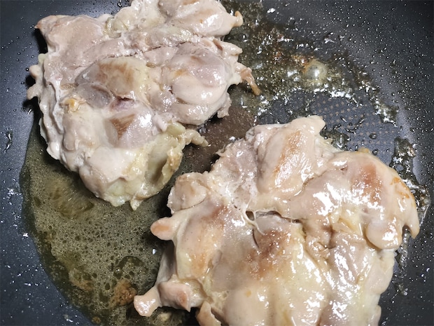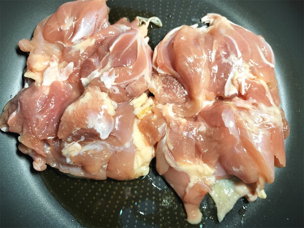 鶏もも肉はスジと余分な脂肪を取り除いておきます。