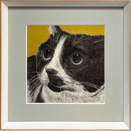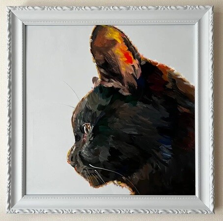 『ねこ』 2025年 / 顔彩、アクリル、キャンバス / 45.5×38cm