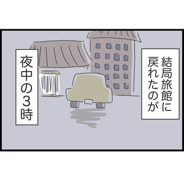 すみれさんたちは、男性たちから逃げるようにしてホテルに戻りました。そのまま倒れ込むように爆睡。チェックアウトの時間になりやっとの思いで車に乗ったのですが、みんな体調が悪そう。