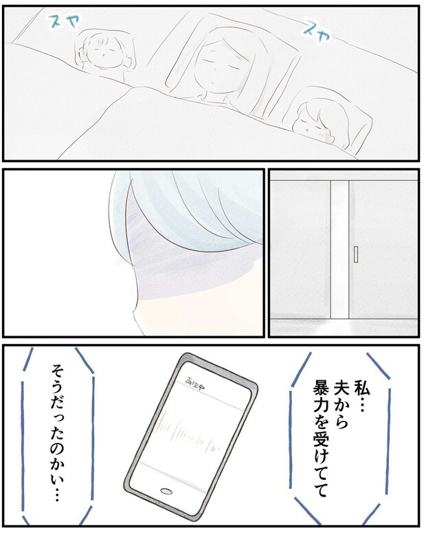 ゆうさんは夫に今日のお礼を言って娘たちと寝室へ。夫は家族が寝静まると、密かに録音していたゆうさんと祖母の会話を再生します。
