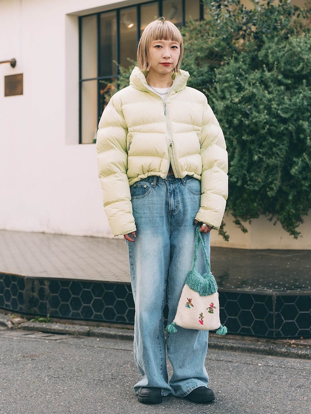 爽やかなライムグリーンのダウンやカラフルなニットなど、冬の主役となるアウターは明るめカラーを選ぶのが今どき。ライトカラーのデニムでトーンを合わせた、こなれ感抜群の親子リンクコーデはぜひ参考にしたい!