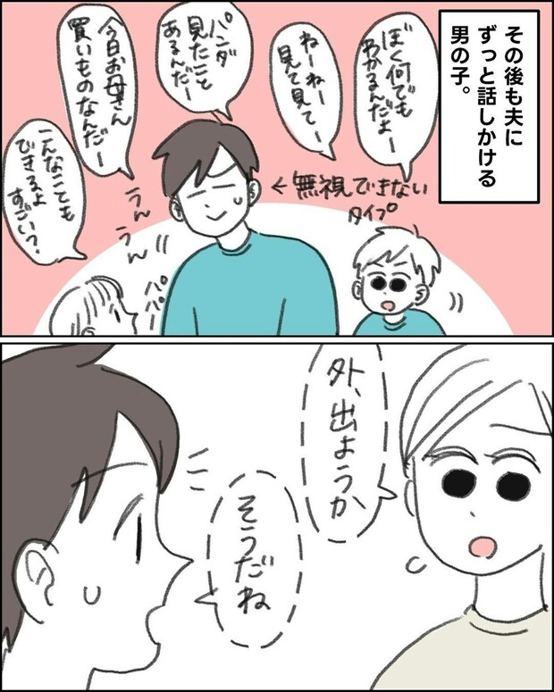 親に放置されているように見える男の子になつかれた、なこさん一家。困惑しながらも、その寂しそうな様子が気になってしまいます。