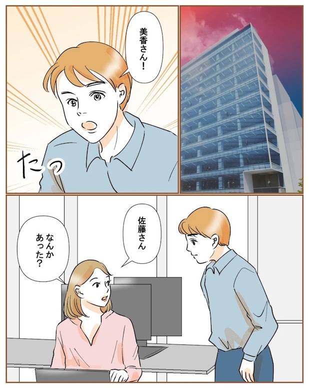 終業後、今日のタスクも終わったしそろそろ帰ろうかななんて考えていると、後輩の佐藤さんが「美香さん!」と、なにやら慌てた様子で駆け寄ってきました。私は少し驚きながら、「佐藤さん、何かあった?」と声をかけます。