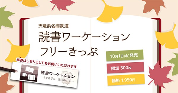 同企画は、天竜浜名湖鉄道沿線での読書旅を促進するもので、限定500枚・1日乗り放題1950円、主要3駅で販売開始となる。
