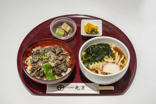 「鹿児島料理 丸万」の「薩摩地鶏やきとり丼+うどん 2倍セット」2,000円(税込)、