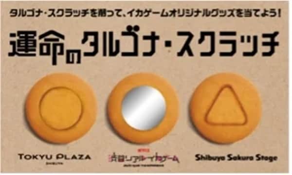 「リアルイカゲーム・ダイニング Shibuya Edition」の開催期間は、1月31日(土)~3月31日(火)。「至高の晩餐メニューフェア」を実施するほか、スクラッチくじ「運命のタルゴナ・スクラッチ」を用意している。