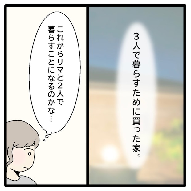 美沙ちゃんに送ってもらったあと、私は立ち止まって自分たちの家を見上げました。3人で暮らすために買った家。引っ越してきたばかりの頃は、ここで幸せな毎日を重ねていくんだと希望に満ち溢れていたっけ・・・。これからは、ここでリマと2人で暮らすことになるんだ。