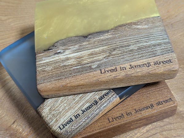 「定禅寺通のケヤキ製コースター」は、ケヤキの端材を余すことなく活用したアイテム。日常の中で「杜の都」を感じることができる。
