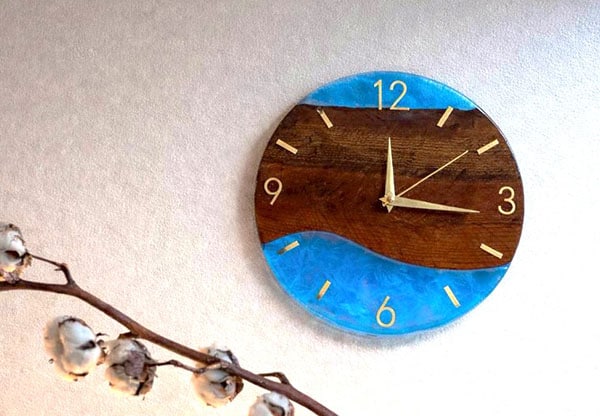 「定禅寺通のケヤキとレジンの掛け時計」は、ケヤキ特有の力強い木目と、定禅寺通のイルミネーションや新緑をイメージしたレジンアートを融合。世界に一つだけの表情を持つ時計だ。