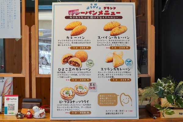 焼きたてのカレーパンをかじると、外はサクッ、中はしっとり。揚げてないのに、香りはしっかり立っていて、驚くほどカリッと歯ざわりがいい。それもそのはず。看板商品の焼きカレーパンは、すべて小麦を使わず、米粉だけでつくられている。