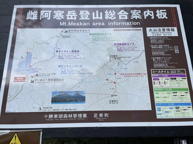 日本百名山・雌阿寒岳の登山道は主に3つあり、雌阿寒温泉(野中温泉)・オンネトー・阿寒湖畔コースです。