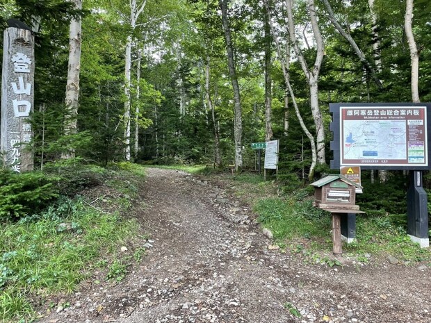 駐車場脇にオンネトーコースの登山口があるので、準備を整えて登山届を記入したら、さっそく登り始めましょう!