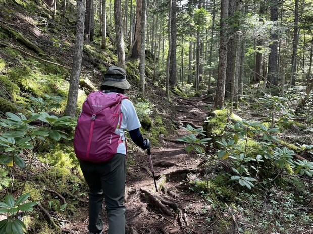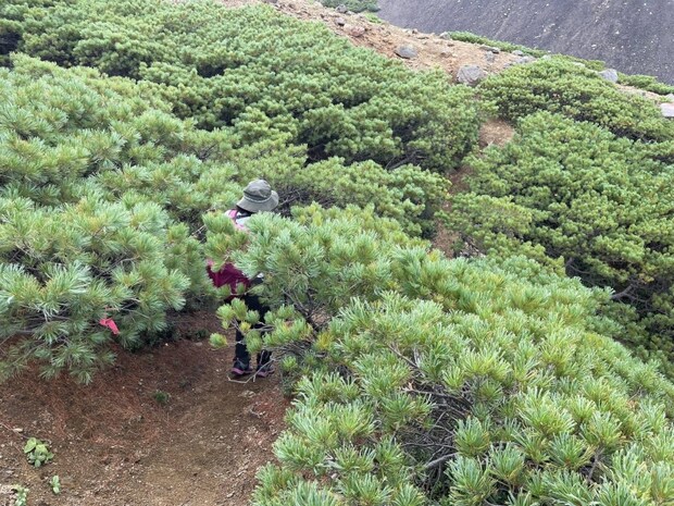5合目を過ぎた辺りから登山道の様子は変わり始め、ハイマツ帯を進んでいきます。