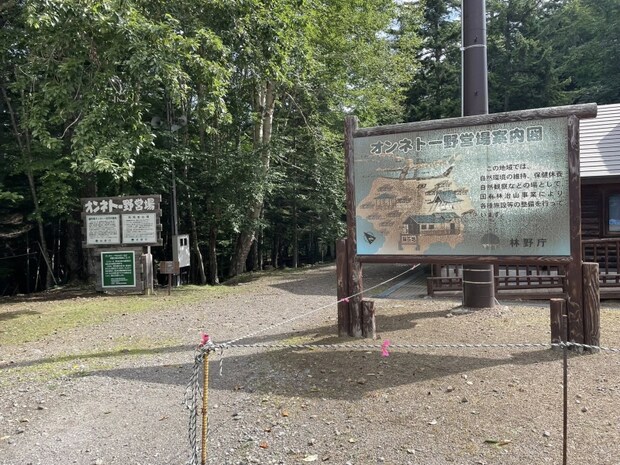無料の駐車場やお手洗いがあるほか、オンネトーのほとり休憩舎もあり、登山前後の拠点としてとても便利な場所です。
