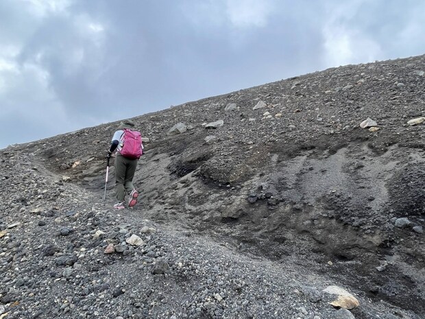 阿寒富士の登山道は火山礫で、足をとられやすくはありますが、比較的歩きやすい道のりです。