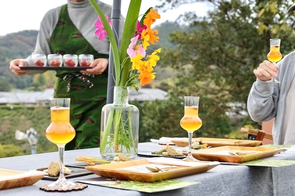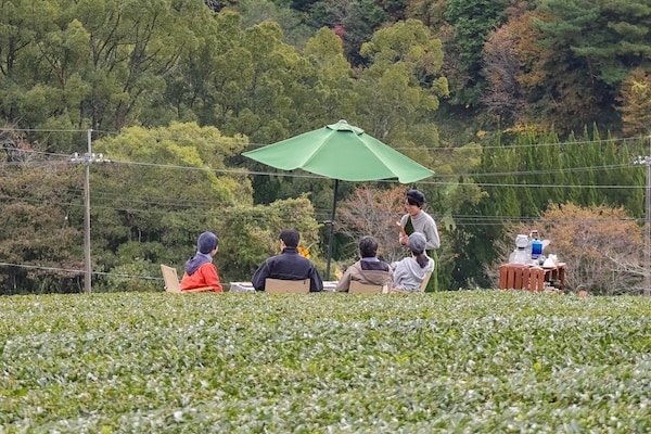 霧山茶園で実施される「日本茶インストラクターと味わう 絶景!土佐茶寮」1グループ22,000円は、茶畑の絶景を前に、インストラクターが淹れる上質な土佐茶と季節のスイーツを楽しめる特別なプログラムだ。