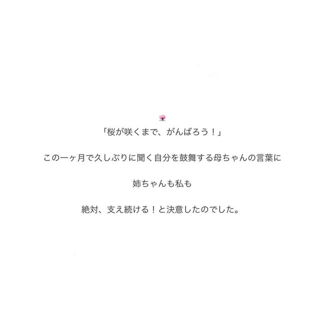 母親はホスピスにいたときよりも体調が安定し、「桜が見られるかもしれない」と希望を持つようになりました。