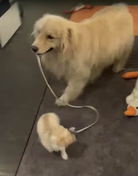 子犬さんはまだまだ体が小さいので首輪ではなく、