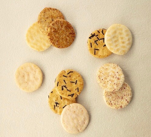 国産米にこだわった「ミニせんべい」各種250円など、こだわりの味も勢ぞろいしている。