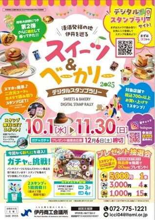 「『清酒発祥の地 伊丹』を巡るスイーツ&ベーカリー デジタルスタンプラリー2025」が、10月1日(水)~11月30日(日)の期間、開催される。