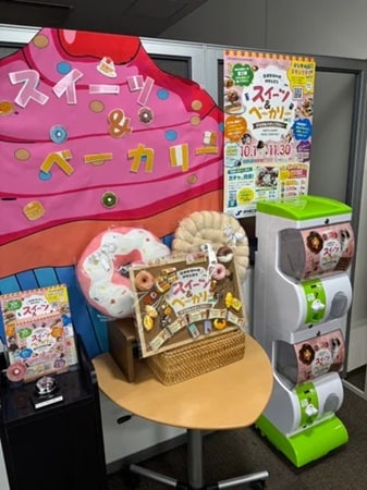 スタンプ2個集めるごとにガチャガチャに挑戦!パンやスイーツにちなんだ可愛い景品が当たる。最大17回挑戦できる。スタンプを集めて伊丹商工会議所に足を運ぼう。