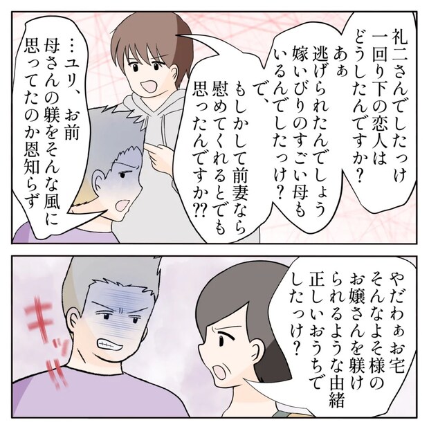 離婚してもなおユリさんを見下し続ける元夫。でも、今はユリさんには力強い味方がいます。公輔さんや公輔さんの両親がみんなでユリさんを守ってくれて頼もしいですね。