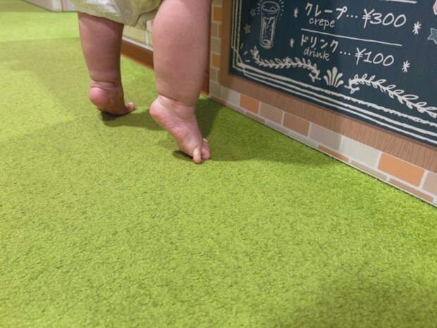 わが子の尊い瞬間を切り取った一枚に拍手です!この投稿には「足指が!!可愛すぎます」「ムチムチの足が可愛すぎる♥」といったリプライがついていました。思わず笑顔になるかわいい投稿でした。