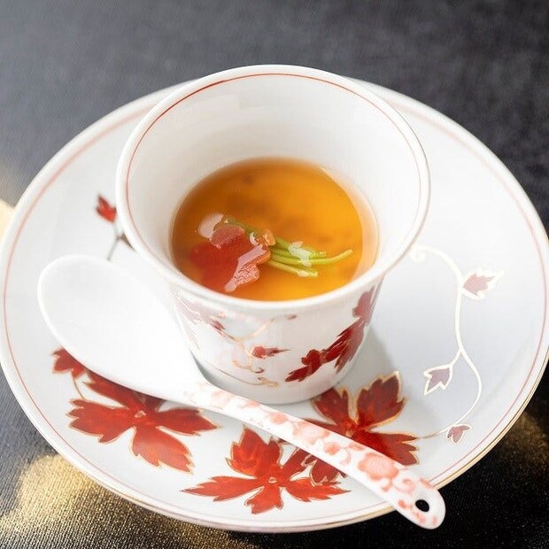 やさしい甘みの小田巻蒸しにはとろりとしたコンソメあんがかけられ、洋風に仕立てられているのも「なだ万」ならでは。