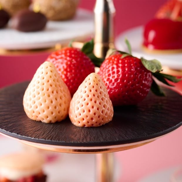 艶やかな赤色が印象的な埼玉県産の高級いちご「あまりん」は、酸味を忘れるほど突き抜けた濃厚な甘みが魅力。ひと口ほおばると、まるでスイーツのような極上の甘みに驚くこと間違いなし。 もうひとつは、ほんのりと桜色を帯びた淡いピンクの佐賀県産白いちご「淡雪」。白いちごの中では糖度が高く、穏やかな酸味が引き立てるやさしく上品な余韻は、まさに「淡雪」の名にふさわしい繊細さ。